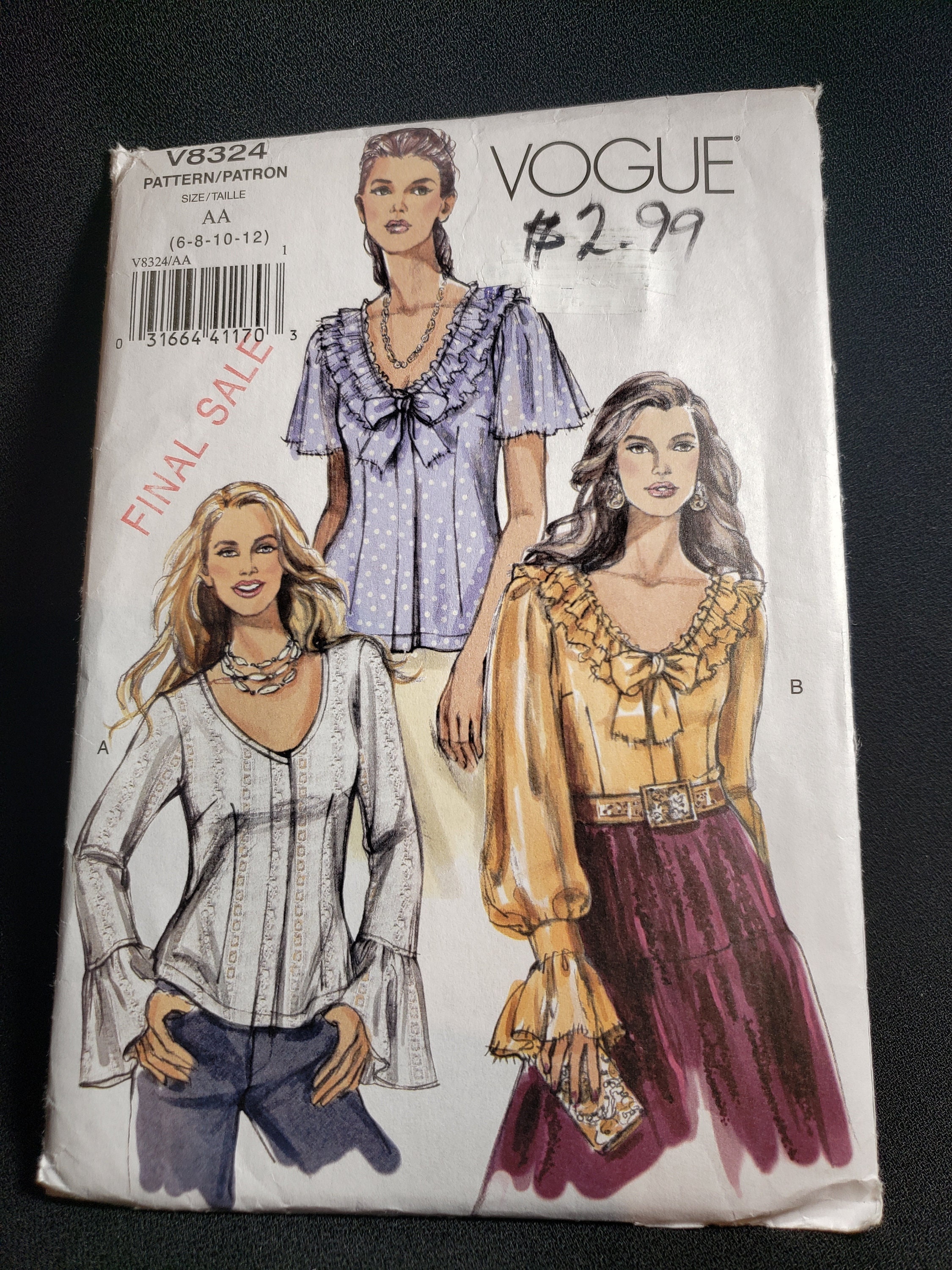 Vogue 8324 Sewing Pattern For Blouse In Sizes 6 8 10 12 Uncut Etsy