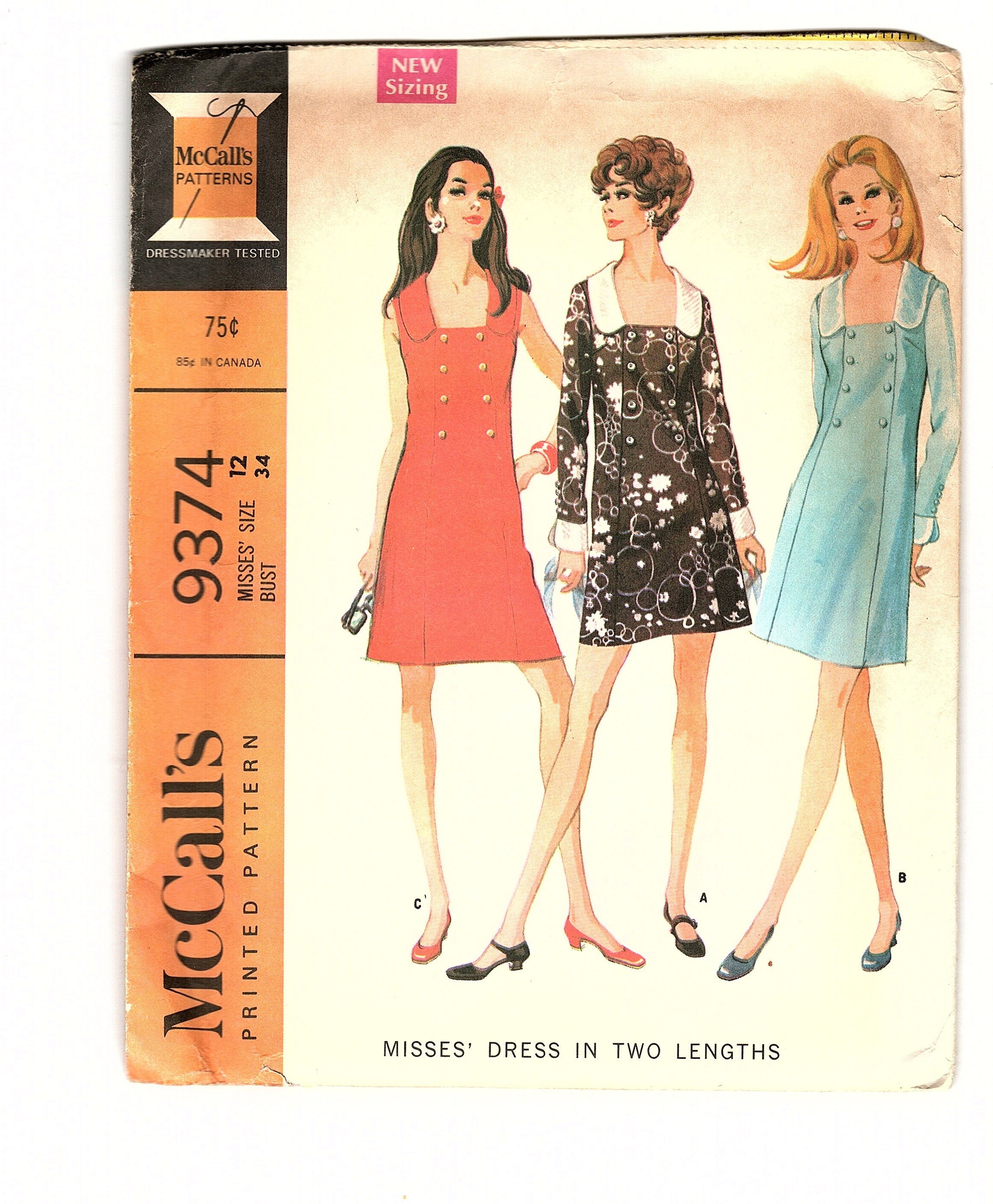 Mccall S 9374 Vintage 60s Dress Pattern 34 Bust Etsy
