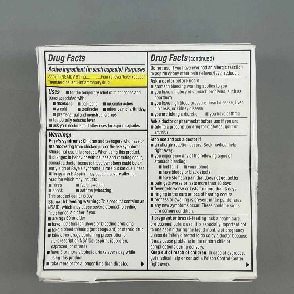 Vazalore Aspirin 81mg Low Dose 12 Liquid Filled Capsules 4pk Exp 2 23 Ebay
